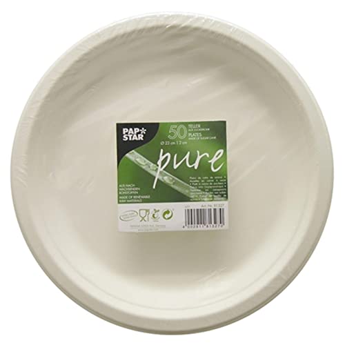 Papstar Pappteller / Einwegteller weiß „pure“ (50 Stück) tief, rund Ø 23 cm, Randhöhe 2 cm, ungeteilt, aus Zuckerrohr, für Grillfest, Geburtstag oder Party, biologisch abbaubar, #81327 Prices