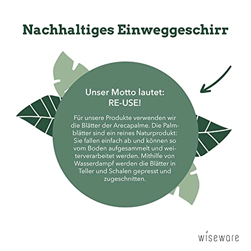 Nachhaltige Teller wiseware Palmblatt Geschirrset 25 Palmblattteller & Schalen, 25 Messer, Gabel & Löffel – Einweggeschirrset aus Palmblatt und Bambus als Alternative zu Papier & Plastik biologisch abbaubar, 125 Stück für deine Party